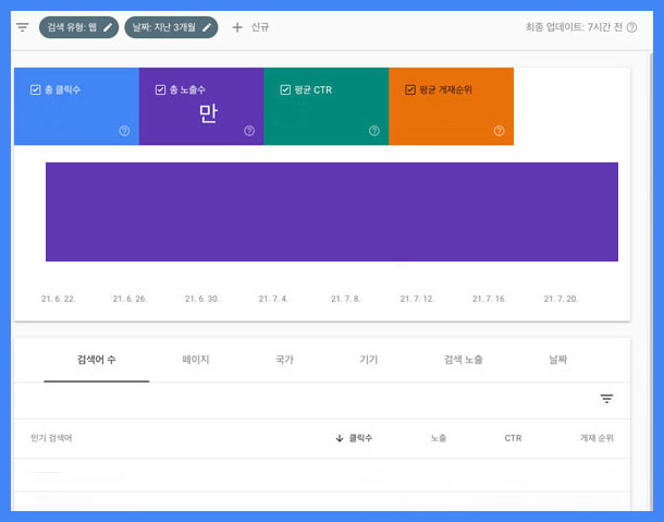 - 그래프 : 총 클릭수 / 총 노출수 / 평균 CTR / 평균 게제순위