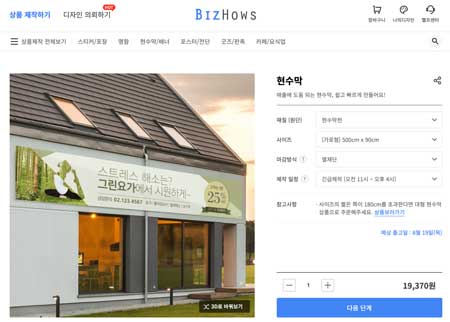 비즈하우스 사이트 중 현수막 바로가기를 클릭해서 위 화면이 나오면 주문을 시작합니다.(현수막 바로가기 클릭