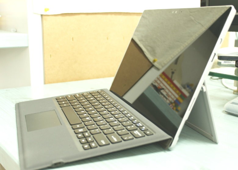 서피스 프로 4(이하 서피스)의 구조상 키보드를 연결하면 책상의 중앙에 서피스를 배치하고 업무를 할 수 밖에 없습니다.