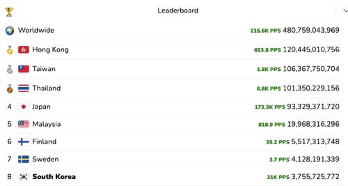 한국의 클릭수가 45.1k pps니까 초당 4만5천개의 클릭이 이루어지고 있는데